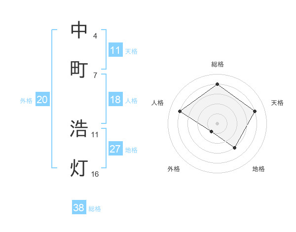 中町 浩灯さんの総格は38画の4点!