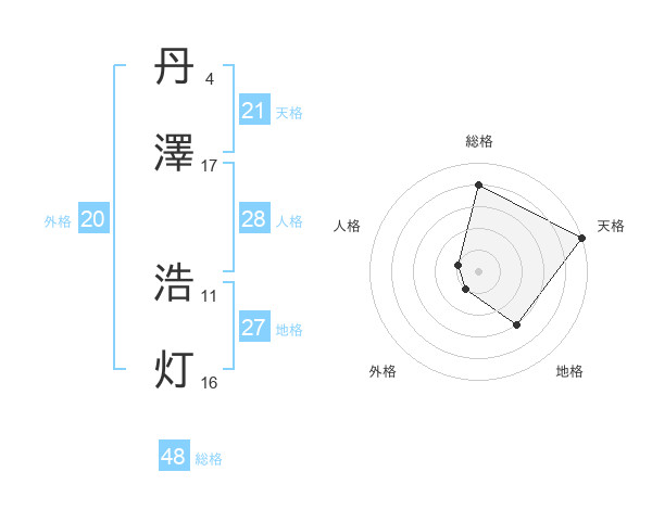 丹澤 浩灯さんの天格は21画の5点!