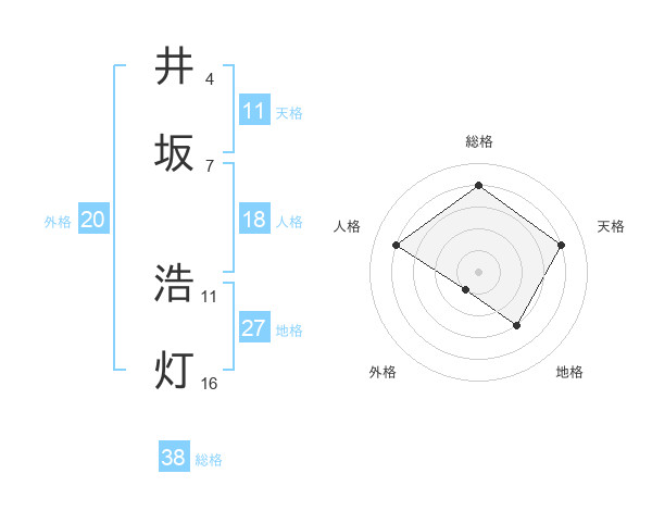 井坂 浩灯さんを姓名の画数から五運を鑑定