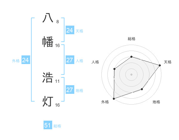 八幡 浩灯さんを姓名の画数から五運を鑑定