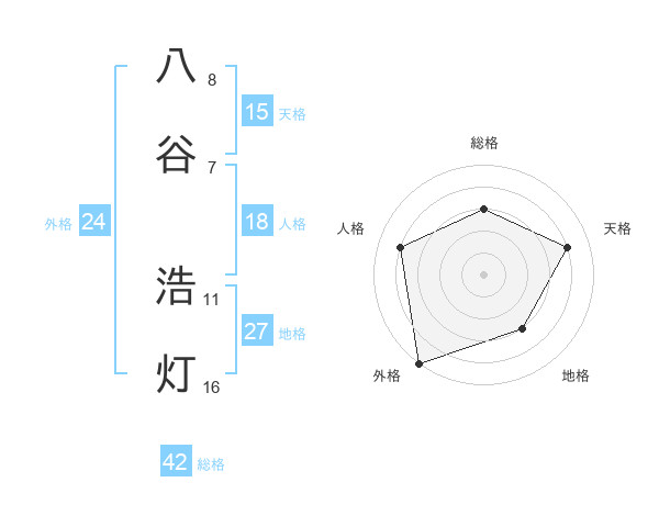 八谷 浩灯さんの総格は42画の3点!