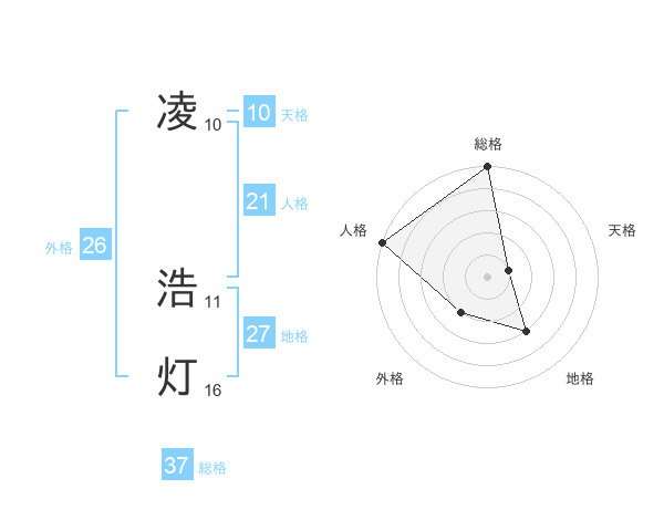 凌 浩灯さんの総格は37画の5点!