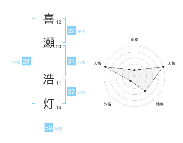 喜瀬 浩灯さんの名前の鑑定結果は!
