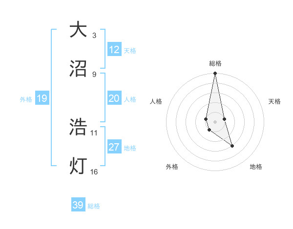 大沼 浩灯さんを姓名の画数から五運を鑑定