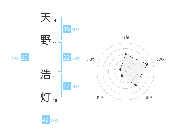 天野 浩灯さんを姓名の画数から五運を鑑定