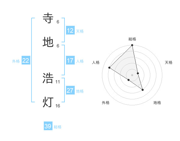 寺地 浩灯さんの総格は39画の5点!