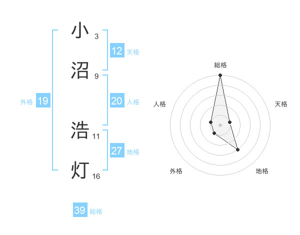 小沼 浩灯さんの総格は39画の5点!