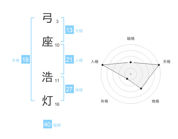弓座 浩灯さんを姓名の画数から五運を鑑定
