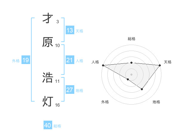 才原 浩灯さんを姓名の画数から五運を鑑定