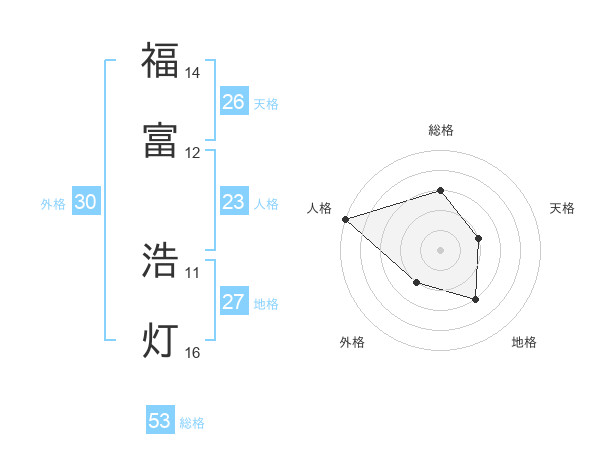福富 浩灯さんを姓名の画数から五運を鑑定
