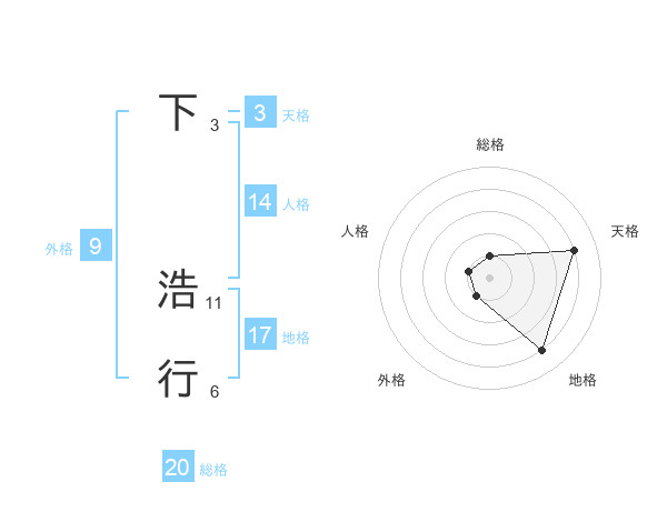 下 浩行さんの総格は20画の1点!