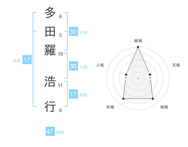 多田羅 浩行さんの総格は47画の5点!