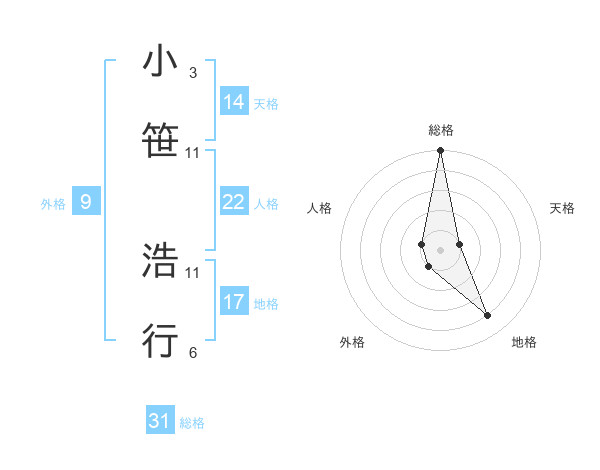 小笹 浩行さんの総格は31画の5点!