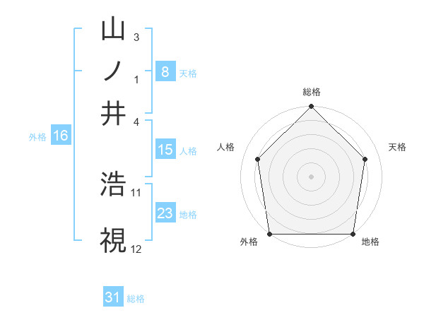 山ノ井 浩視さんを姓名の画数から五運を鑑定