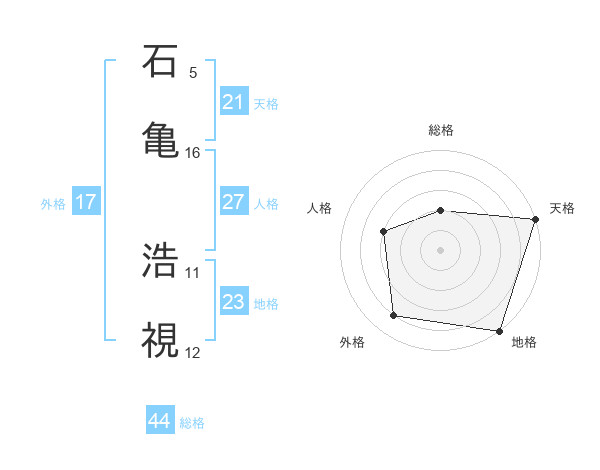 石亀 浩視さんを姓名の画数から五運を鑑定