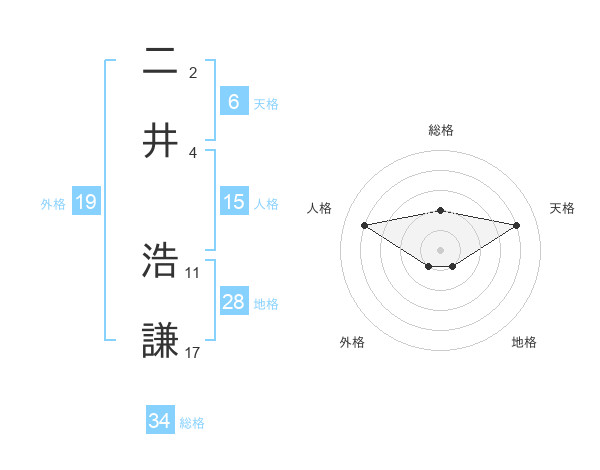 二井 浩謙さんの天格は6画の4点!