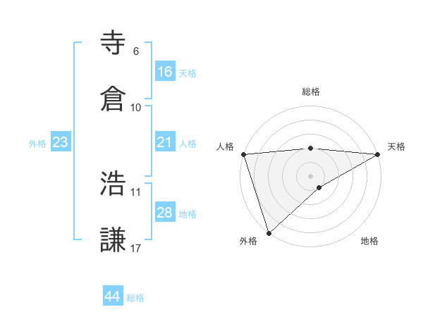 寺倉 浩謙さんを姓名の画数から五運を鑑定