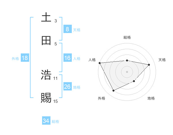 土田 浩賜さんを姓名の画数から五運を鑑定