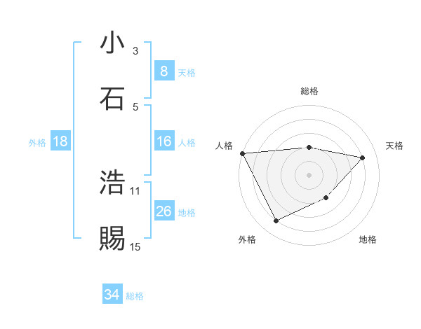 小石 浩賜さんを姓名の画数から五運を鑑定