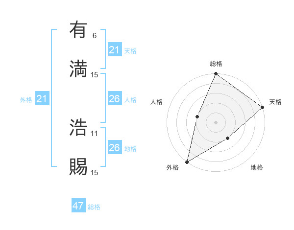 有満 浩賜さんを姓名の画数から五運を鑑定