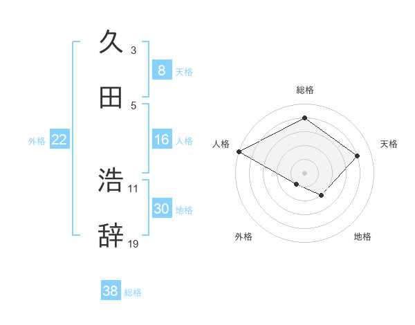 久田 浩辞さんの総格は38画の4点!