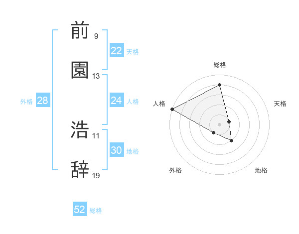 前園 浩辞さんを姓名の画数から五運を鑑定