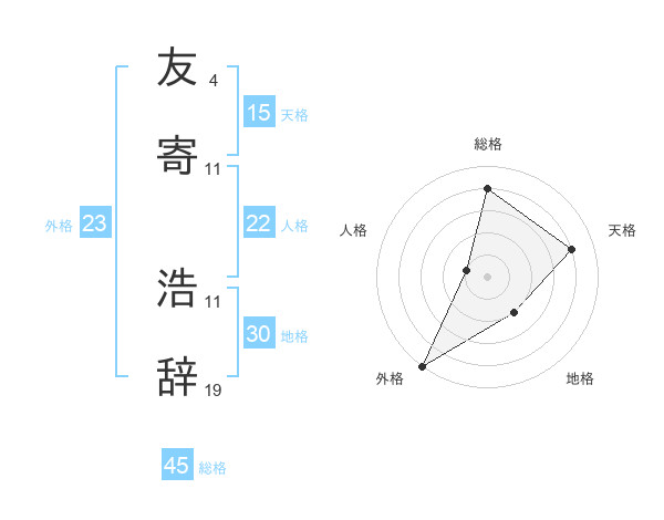 友寄 浩辞さんの総格は45画の4点!