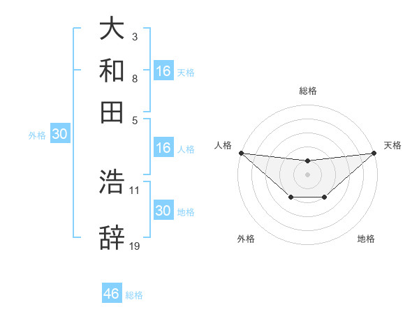 大和田 浩辞さんを姓名の画数から五運を鑑定