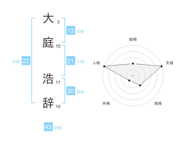 大庭 浩辞さんを姓名の画数から五運を鑑定