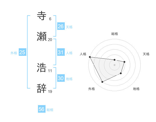 寺瀬 浩辞さんの天格は26画の2点!