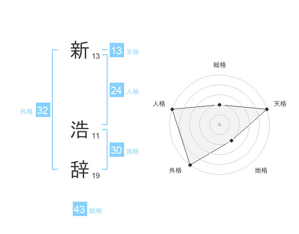 新 浩辞さんの天格は13画の5点!