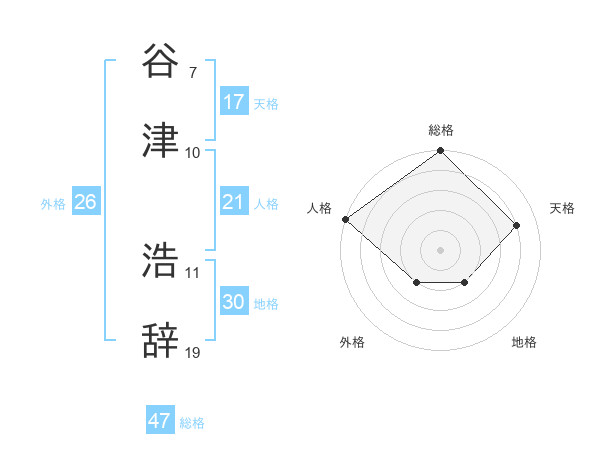 谷津 浩辞さんを姓名の画数から五運を鑑定
