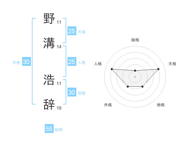 野溝 浩辞さんの総格は55画の1点!
