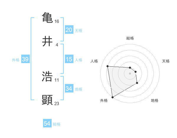 亀井 浩顕さんを姓名の画数から五運を鑑定