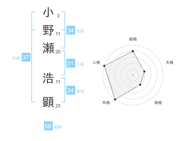 小野瀬 浩顕さんの総格は68画の4点!