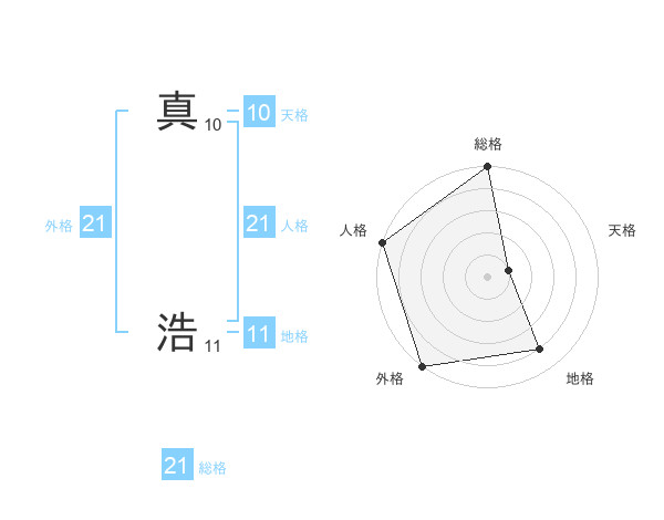 真 浩さんの総格は21画の5点!