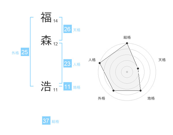 福森 浩さんの総格は37画の5点!