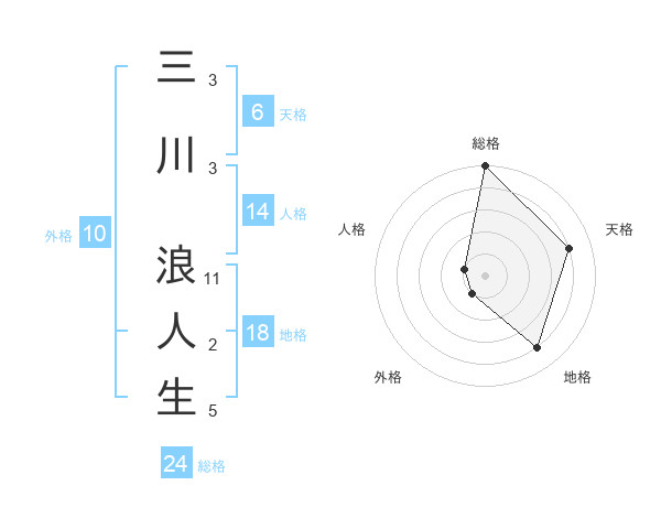三川 浪人生さんを姓名の画数から五運を鑑定
