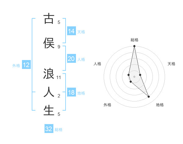 古俣 浪人生さんの総格は32画の5点!