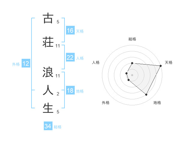 古荘 浪人生さんを姓名の画数から五運を鑑定