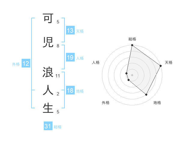 可児 浪人生さんを姓名の画数から五運を鑑定