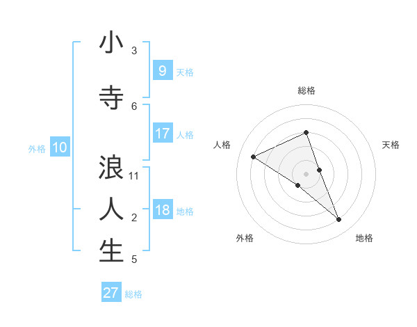 小寺 浪人生さんを姓名の画数から五運を鑑定