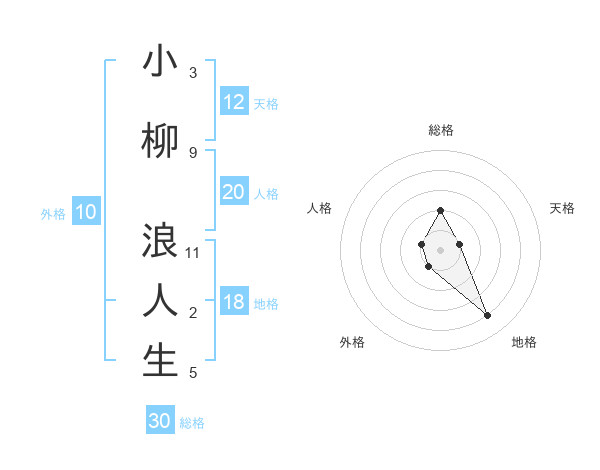 小柳 浪人生さんの天格は12画の1点!