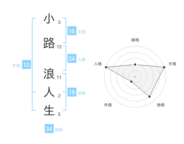 小路 浪人生さんを姓名の画数から五運を鑑定