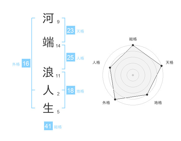 河端 浪人生さんの外格は16画の5点!
