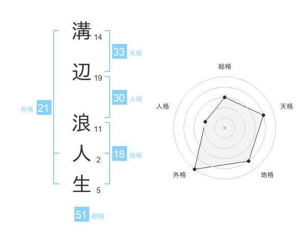 溝辺 浪人生さんの総格は51画の3点!
