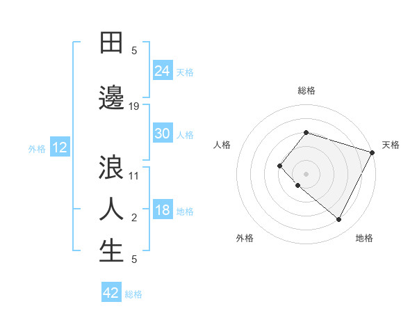田邊 浪人生さんを姓名の画数から五運を鑑定