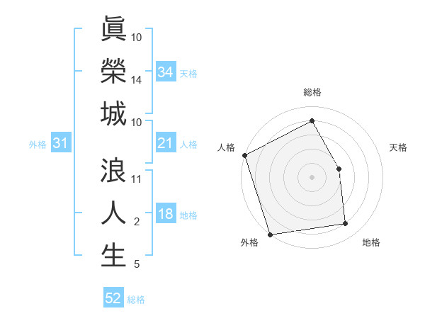 眞榮城 浪人生さんを姓名の画数から五運を鑑定