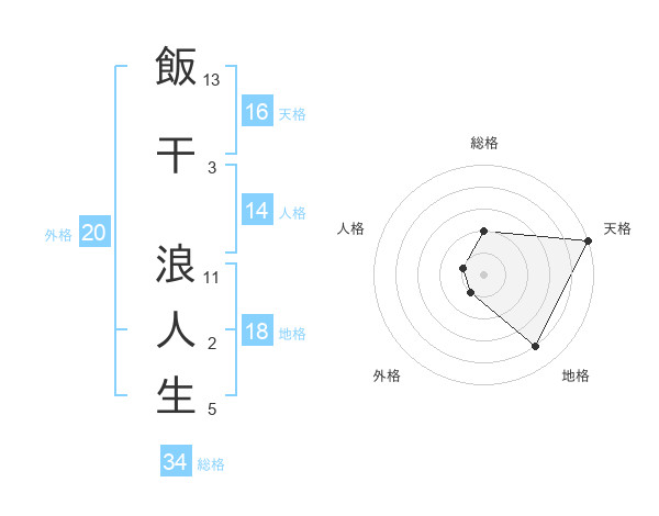 飯干 浪人生さんを姓名の画数から五運を鑑定