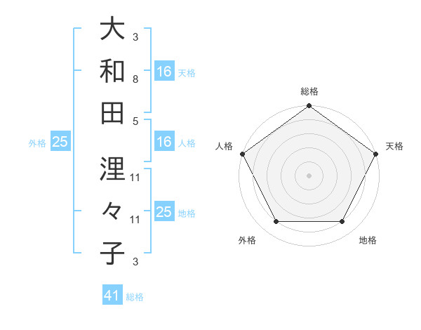 大和田 浬々子さんを姓名の画数から五運を鑑定